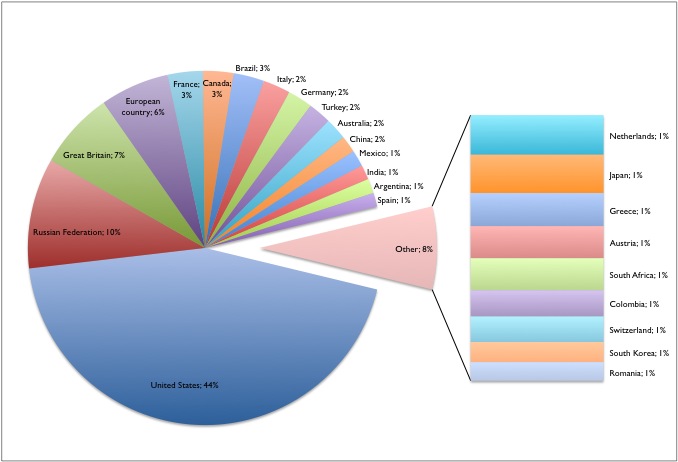 Oceania, 12.2% in Latin America, and 2.8% in Canada (see the figure